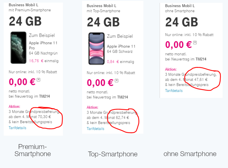 Die Firma muss sich also die Geräte selbst besorgen und kann maximal auf einen SIM-only-Tarif zurückgreifen, für den dann auch noch die Kaution fällig wird. Das macht natürlich die Beschaffung der Firmengeräte insgesamt nicht gerade einfacher.
