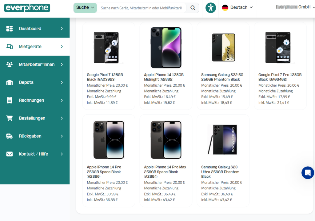 Im Rahmen unseres Miet-Services „Choose your own Device“ (CYOD) können Mitarbeiter*innen sich aus einem vorher festgelegten Unternehmens-Portfolio das Smartphone-Modell aussuchen, das ihnen am besten gefällt.