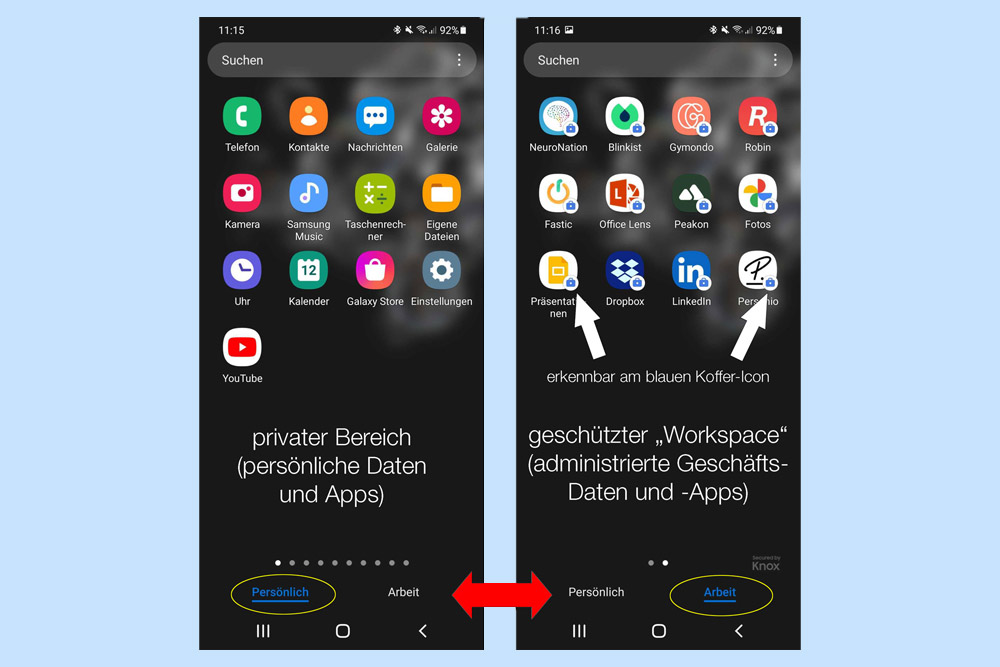 Sogenannte MDM-Softwaresysteme (Mobile Device Management) bieten hier eine gute Lösung. Hierbei wird auf dem Gerät ein separater geschützter Arbeitsbereich geschaffen, der von der privaten Nutzung vollständig getrennt ist. Dieser Bereich wird auch als Workspace oder Container bezeichnet. Durch die ordentliche Verwendung eines MDM entspricht die private Nutzung von Diensthandys den DSGVO-Bestimmungen.