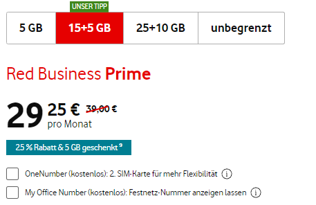 Die „Red Business Prime“-Tarife gibt es mit verschiedenen Datenvolumen, die sich im Laufe der Zeit immer wieder mal geändert haben. 2022 gab es sie in 5 GB, 20 GB, 35 GB und mit unbegrenztem Datenvolumen.