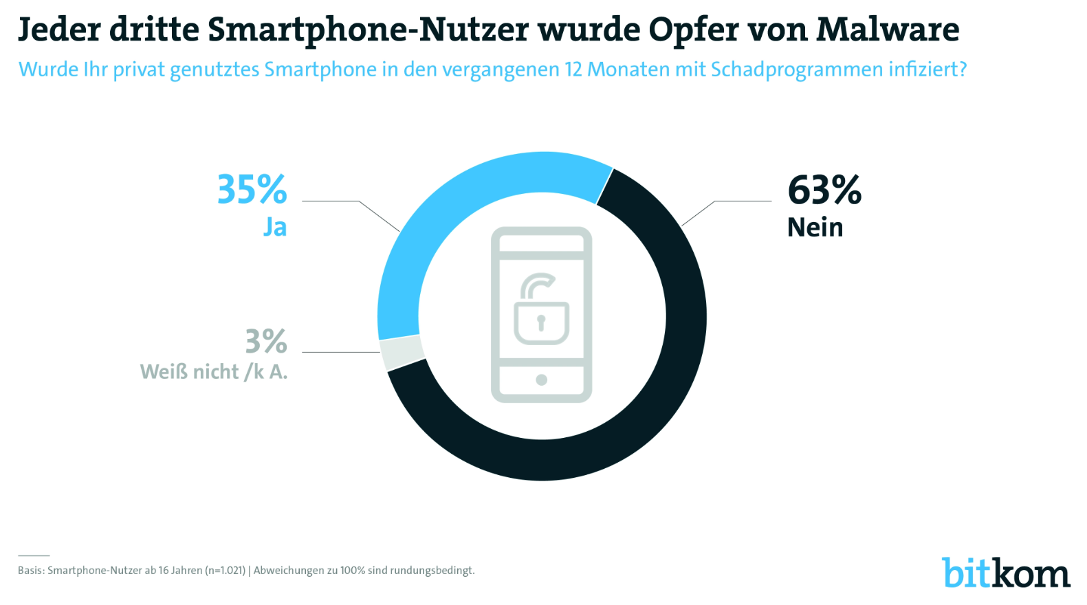 Über ein Drittel der befragten Nutzer hat im letzten Jahr unter Handymalware gelitten (Quelle: Bitkom)