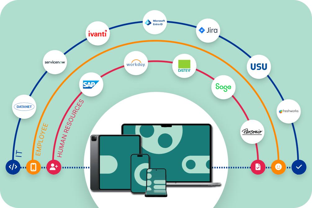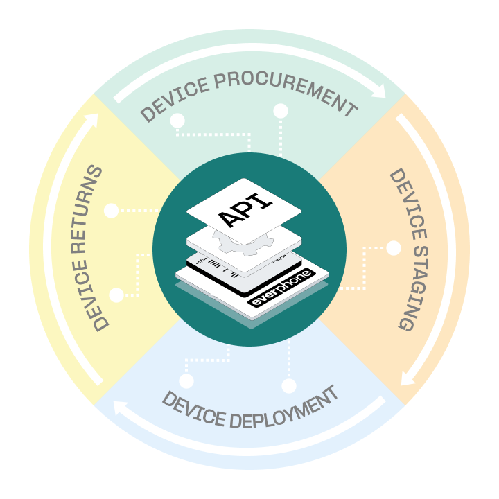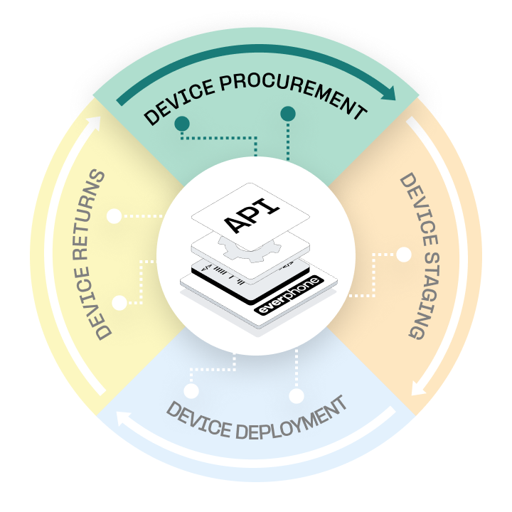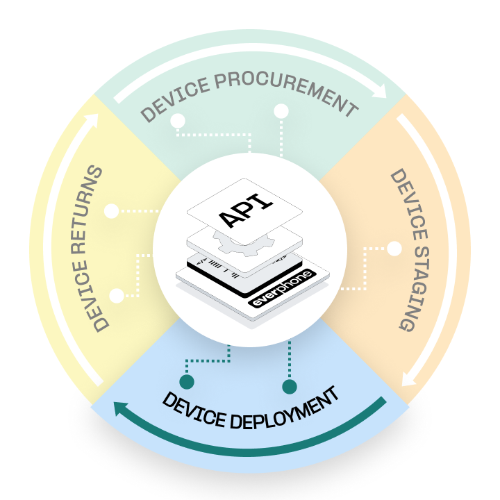 The Everphone API seamlessly integrates our Device-as-a-Service platform into your system landscape. By connecting HR or ITSM solutions, you can directly manage user changes, orders, and returns — and automate device management to a large extent: