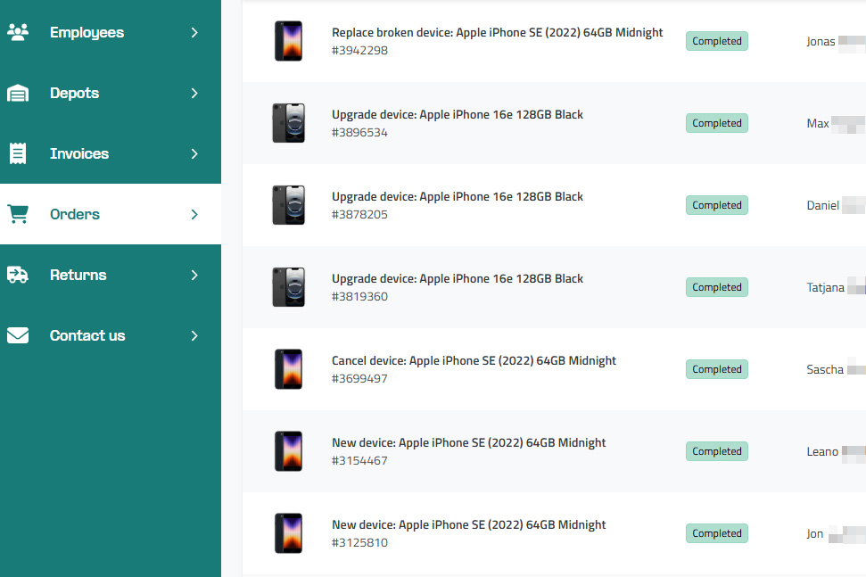 Seamless device availability close to users is ensured by 2–3 regional depots for the local provision of replacement devices. If an iPhone/iPad does break, it can be replaced with a depot device in minutes.