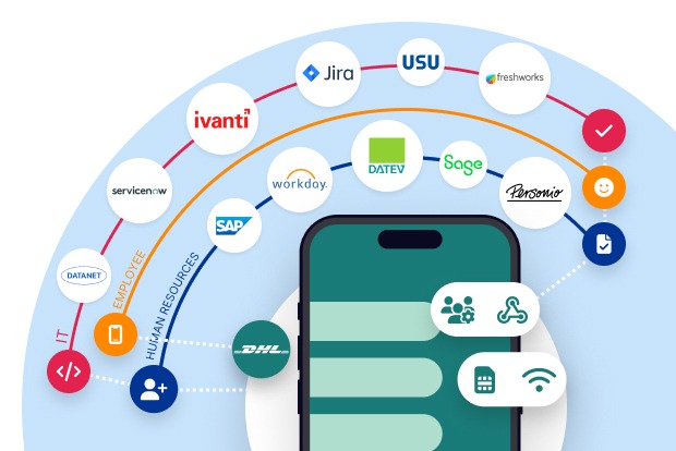 Avec Everphone, vous pouvez déployer facilement le blueprint ITSM Workplace dans vos autres pays. Aucune intégration supplémentaire requise : le workflow automatisé se déploie à l’international avec un effort de développement minimal. L’automatisation quasi totale réduit durablement la charge de travail interne.